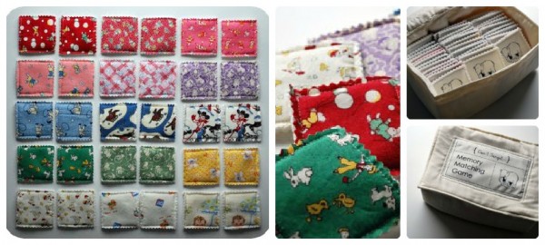 Bellissima anche quest’idea di utilizzare avanzi di stoffa, per creare un memory bello, naturale e lavabile! Idea di Chez Beeper Bebe